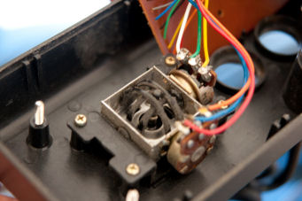 Il faut cependant savoir qu’une manette de Vectrex c’est cocasse. En effet les vis sont sous le plastique imprimé. Il faut donc le soulever. Si vous êtes un peu léger intellectuellement vous pouvez l’arracher comme une grosse tanche. Mais les esprits fins se feront aider par un sèche-cheveux, qui aura le bon goût de décoller doucement l’ensemble sans tout casser. Une fois les vis dégagées, rien de plus simple. Quelques tours et le corps inerte de l’ancêtre s’offre à vous (là encore si vous avez vu autre chose dans votre cerveau malade, au risque de paraître insistant, ne prenez pas le volant et allez consulter en bus). Donner de votre souffle divin dans le stick analogique pour nettoyer toutes ses vieilles poussières qui font coincer la délicate mécanique. Nettoyez d’un coup de coton tige le plastique des contacteurs des boutons, le circuit imprimé, et une fois que tout cela est propre, remontez donc tout ça. Remettez-tout en place, et hop, logiquement si vous n’êtes pas trop cloche, vous avez un stick qui fonctionne comme au premier jour.