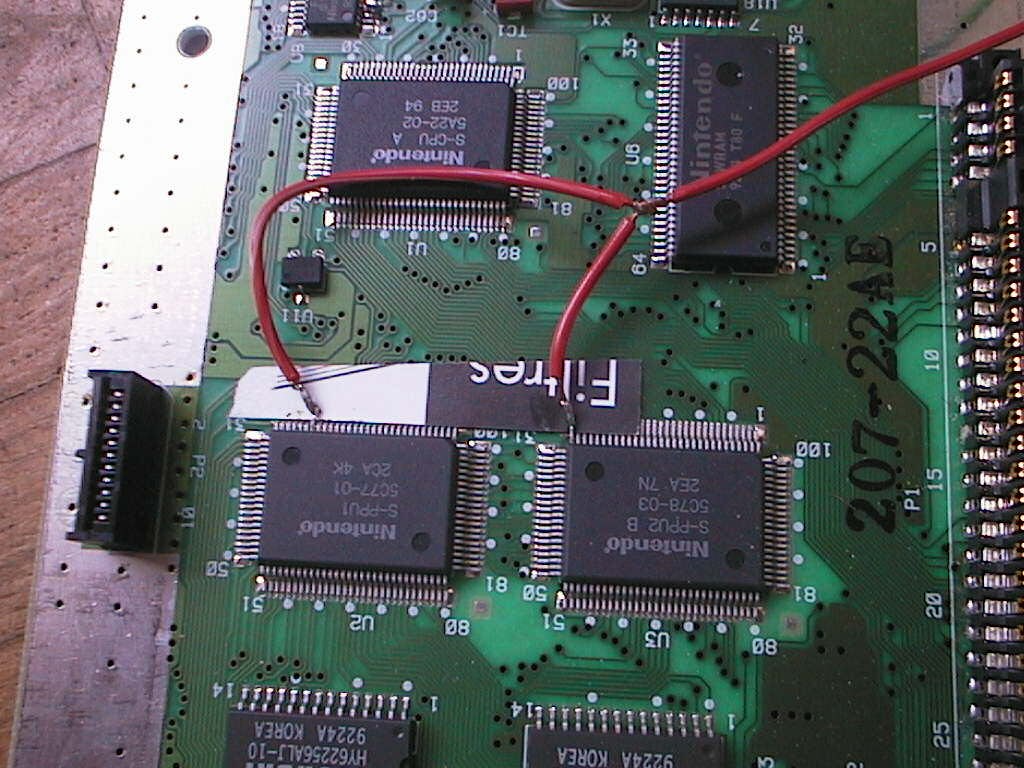 Oui, il n’y a pas que du drôle obligatoirement. Tout se mérite dans ce bas monde. Et là on rentre dans la partie ardue. Il faut tout d’abord localiser 3 puces sur le circuit imprimé. On a tout d’abord F413, « Bonjour F413 » (voix des oldies en furie), puis vient ensuite S-PPU1 et S-PPU2 qui sont côte à côté. Là, je vous le dis tout de go, on va dessouder une patte sur chacune de ces puces. Oui, dis comme ça, dessouder une patte ça n’a rien de bien violent. Mais quand vous voyez la taille des pattes, il y a de quoi devenir hystérique. Même pas un millimètre de diamètre, du travail d’artiste. C’est là où j’ai exploité utilisé les services de VitaEterna, car à une main je dois dire le défi tourne au massacre. Alors on va commencer par F413 « Bonjour F413 » (euh non lah ça suffit hein ?)