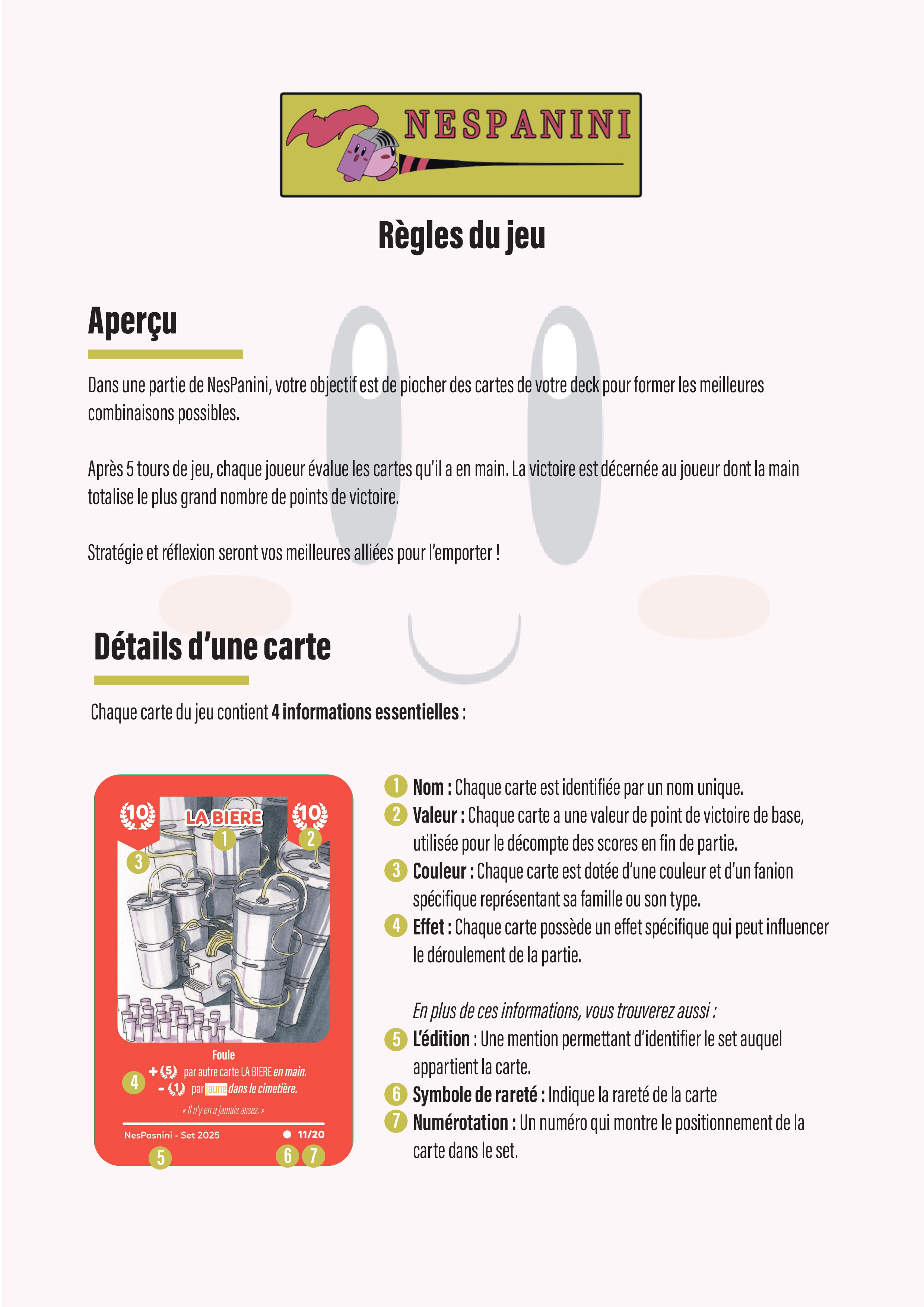 Nespanini, c'est un TCG créé par Ugluck et Maxdami pour NESPAS 2025 : JIZZ IN THE VERGER.