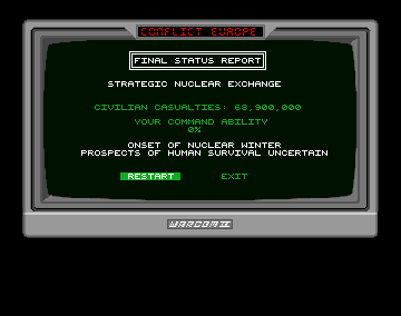 En conclusion, Conflict : Europe est typiquement le genre de jeu qu'on découvre en se disant « Wouah on peut faire ça ! Trop cool ! », avant de se rendre compte, dix minutes plus tard que « Ah, mais, ça sue la haine en fait ». A essayer une fois tout de même, juste pour sentir sur sa nuque le souffle froid et sec de l'hiver nucléaire.