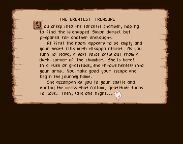 Voilà, avec tout ça qui se répète à chaque tour, il y a matière à chier des lames de scie circulaire avant de finir le jeu, à savoir conquérir l'intégralité de l'Angleterre, vous asseoir sur le trône, régner en tyran, partir en croisade quand il n'y aura plus de pucelles à violer dans le royaume (en plus, le viol de pucelles non chrétiennes n'est pas marqué sur l'ardoise divine), et enfin vous repentir vite fait sur votre lit de mort, avant de laisser un pays exsangue à un fils taré.