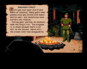J'ai oublié de vous parler de quelques subtilités. D'abord, on peut réclamer l'aide de Robin de Loxley, ce gugusse en collants qui se planque dans la forêt de Sherwood. Il vous l'accordera trois fois, en vous envoyant des hommes en renfort, après quoi tu peux te brosser mon con, j'ai le pont sur la rivière Schtroumpf à reconstruire avec mes copains bouseux.