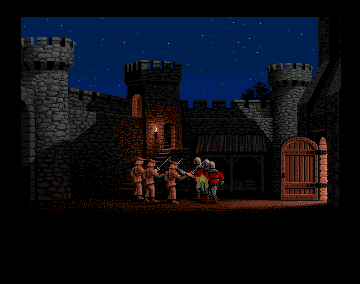 * Tenter un coup de main sur une forteresse ennemie à la faveur d'une nuit sans lune : si le moine tonsuré chargé de vos finances n'arrête pas de vous rabâcher les oreilles avec des « non coco franchement là tu déconnes, pas de banquets le mois prochain ou sinon je ne réponds plus de rien », vous pouvez prendre quelques hommes de confiance avec vous histoire d'aller vider les caisses d'un seigneur voisin. Concrètement, ça donne une petite vue de côté toute mignonette avec des playmobils qui se tabassent dans la cour du château, qu'on peut diriger à la souris, en cliquant frénétiquement, suivi d'un passage dans le grand escalier du château, très « Fanfan la Tulipe tricote avec son épée en tortillant du cul et en poussant des cris aigus ».