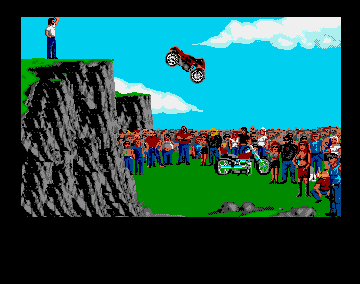 -Rien. Après la deuxième étape, ça devient horriblement répétitif, les trajets sont affreusement longs, on s'endort… J'veux dire, ça m'est déjà arrivé de dormir sur ma bécane, mais jamais quand elle roulait. A part ça, graphiquement c'est pas mal, mais côté son c'est le grand vide, après la musique du début il n'y a que le bruit du moteur pour meubler le silence… Bruit affreux d'ailleurs, on dirait un coyote en train de cuire à la broche.