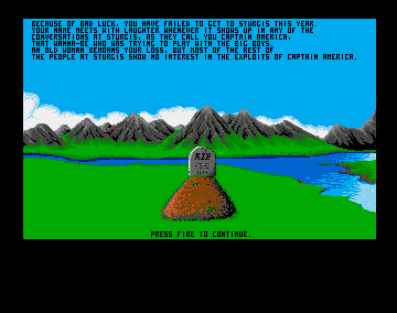 -Je ne vous le fait pas dire. Hé bien Mike, je vous remercie et vous dis adieu, et bonne chance. Quant à toi, ami lecteur, tu auras compris qu'il n'y a rien à attendre de ce jeu, dommage, ce n'est pas encore aujourd'hui qu'on pourra sentir l'odeur musquée des motards sur nos machines préférées. En attendant, à bientôt pour de nouvelles aventures.