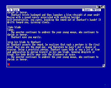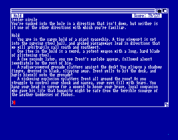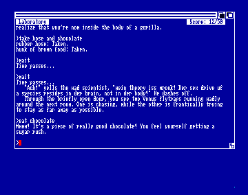Leather Goddesses of Phobos (que j'appellerais dorénavant LGOP, grâce à quoi je retarderai l'apparition de mon syndrome du canal carpien, merci pour lui) est donc…un jeu. A priori. L'aventure textuelle, ou fiction interactive, fut un genre assez populaire dans les premiers temps du vidéoludisme, de la fin des années 70 jusqu'à ce fameux matin de mars 1981 où un jeune ingénieur décida d'inventer les graphismes et de passer à autre chose.