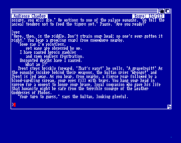 Bon, ça n'a pas l'air comme ça, mais LGOP n'est pas un mauvais jeu, loin de là. On peut même aller jusqu'à l'apprécier grâce à ses quelques passages bien rigolo, malheureusement ses énigmes stupides venues d'un autre temps auront raison de la plupart des joueurs qui n'ont ni la solution sous le nez ni la patience de rentrer l'intégralité du Harrap's Shorter dans l'ordinateur pour voir si ça le fait réagir. En définitive, j'ai envie de dire que c'est une curiosité d'un autre temps, un peu comme ce vieux moustique fossilisé dans un morceau d'ambre que des paléontologues tripotent d'un air inspiré pendant quelques minutes, avant d'y coller une étiquette et de le reléguer au fond d'un tiroir pour s'en retourner à des activités autrement plus distrayantes, comme mélanger des os de poulet pour créer une nouvelle espèce de dinosaure ou jouer à chat-bite dans les couloirs du muséum d'Histoire Naturelle.