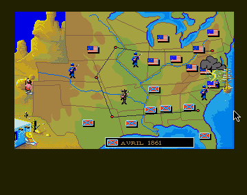 En ce qui concerne le jeu en lui même, vous incarnez un général devant mener ses troupes à la victoire. Soit vous trucidez toutes les troupes adverses, soit vous capturez tous les forts de l'ennemi. Les forts servent de points d'arrêt pour le train qui ravitaille votre compte en banque. Deux forts, et vous voilà doté de deux sacs d'or par tour. Tous les 5 sacs, c'est un bataillon de plus qui vous est alloué. Les forts sont donc des points stratégiques, de même que les régions côtières qui permettront le débarquement de troupes (enfin l'une des régions, celle qui est étroite et horizontale).
