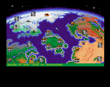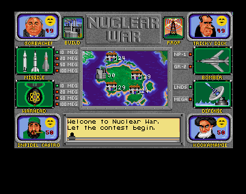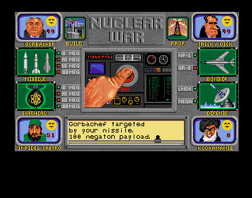 J'entends quelqu'un dans le fond qui me dit « c'est dommage ! Ça aurait été rigolo. ». C'est ce qu'a dû se dire New World Computing en 1989 (après la chute du Mur) comprenant que ça n'arriverait pas de sitôt. Ces développeurs n'étaient pas encore très connus. Leur heure de gloire arrivera avec la série des Heroes of Might & Magic. En attendant, ils ont développé un petit jeu sur Amiga édité par US Gold et qui s'appelle Nuclear War, tout simplement.