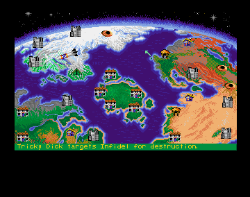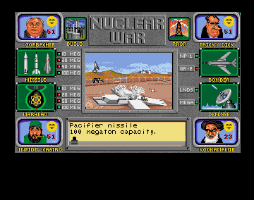 Toute la stratégie consiste donc à prévoir ce que les autres vont faire et à anticiper. Si trois adversaires déploient des missiles, vous avez intérêt à déployer un dispositif de défense le tour suivant. Plutôt que de gâcher un missile pour terminer une petite ville, il vaut mieux utiliser la propagande. Les adversaires ordinateurs sont assez imprévisibles et sacrément revanchards. J'aurais tendance à dire que la meilleure stratégie consiste à s'acharner sur le plus faible. Mais dans un jeu qui traite de la guerre thermonucléaire, même le plus faible peut vous balancer une bombe de 100 M sur le coin de la gueule.