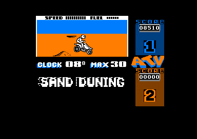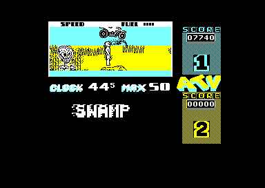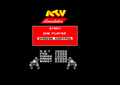 Aujourd'hui j'ai mal au crâne. Oui, j'ai bêtement souhaité l'anniversaire d'un ami hier soir, et mes corbières me font atrocement souffrir. Mais je suis sur que vous ne voyez pas le rapport avec un jeu Amstrad. Moi si : lorsque tout va mal, lorsque le monde extérieur est particulièrement hostile, il faut des rustines, qui évite la fuite lente et douloureuse vers la mort de votre cerveau malade. Et cette solution est pour moi l'Amstrad. Alors d'une main molle j'allume la chose, je choppe une disquette au pif, et quelques KAT, CATTE, KHAT, CAT plus loin je lance ATV Simulator. Pour mon plus grand plaisir, mais peut-être pas le votre.