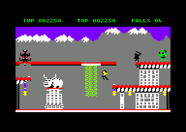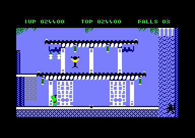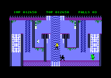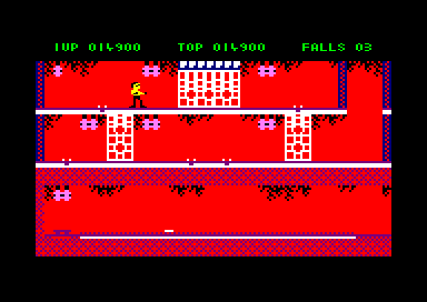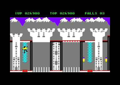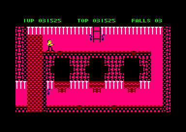 La difficulté est progressive, ce qui est étonnant pour un jeu de la belle époque. Mais c'est tant mieux. On sautille de plateforme en plateforme, en évitant les lance-flammes, les piques, les torrents déchaînés. Bien sûr la moindre erreur est fatale. Et ce n'est pas le nombre de vies que vous avez au départ qui vous aidera. Vous mourrez donc un paquet de fois, sournoisement, comme ça sans prévenir. Bien sûr vous vous acharnerez. C'est un peu une sorte de Rick Dangerous avant l'heure, à part que là on sait d'où viennent les pièges et donc la mort. Faible consolation.