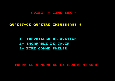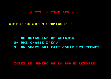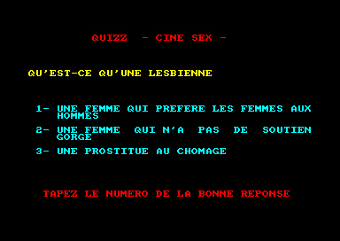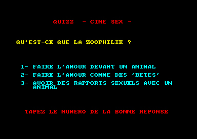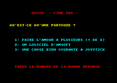 Encore ici, les trois réponses sont là pour vous induire en erreur et pour cause, deux d'entre elles ne sont absolument pas vérifiables. Aussi, rabattons- nous sur sa définition canonique et reconnue qu'est la pratique du sexe à plus de deux partenaires. Quant à Amsoft et Joystick, NesPas continue son enquête.