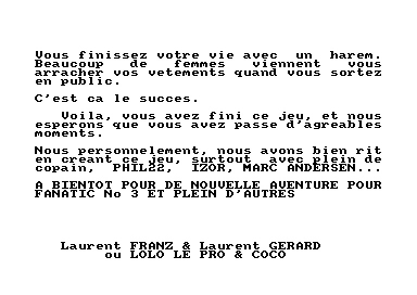 Mais n'oubliez pas que vous êtes diplômé de la Bite d'Or et que vous n'avez rien à prouver, si ce ne sont talents et pour ça, rien de plus facile que de secouer le joystick de votre Amstrad. Allez, au boulot, on vous regarde.
