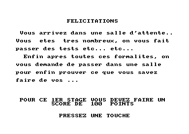 C'est l'heure de vous distinguer alors ne vous laissez pas abattre et secouez le joystick de votre Amstrad (osez me dire que vous y jouez sur émulateur, mécréant) et pulvérisez le misérable score imposé pour valider l'épreuve.