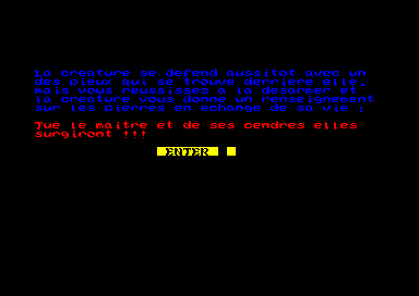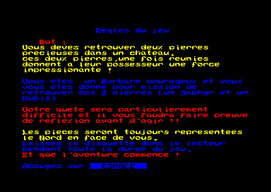 Aujourd'hui, je suis un fou, je vais vous parler d'un jeu de rôle sur Amstrad. Oui, je sais ça fait rêver. Les vieux barbons se souviennent des valeurs sûres de l'époque, comme SRAM 2, ou d'autres, à saisie de texte. Pour les plus jeunes, il faut savoir qu'en ces temps là il fallait avoir une imagination particulièrement débordante et quelques mots de vocabulaire, qu'on tentait de faire comprendre à l'ordinateur. On se retrouvait dans la grande majorité des jeux de rôle de ce temps là avec un décor, et une ligne de saisie genre « et maintenant, on fait quoi ? » où la saisie d'un simple mot débloquait une situation. Des actions genre « ouvrir porte », « nord » ou encore « tu me fais chier » était classique, et l'ordinateur réagissait en conséquence.