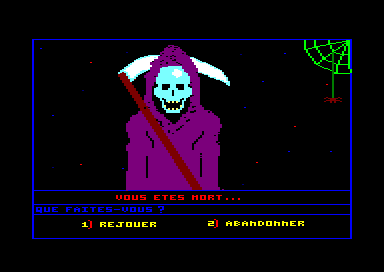 On mourra de nombreuses fois. Pas en le faisant exprès. En effet le jeu n'a en soi aucune difficulté. Il suffit d'enchaîner les bonnes actions, et la solution se résume en une suite de chiffres… Mais s'il vous peut arriver de sortir du sentier tracé, le jeu immédiatement vous sanctionnera d'une mort immédiate, pour des actions finalement très basiques. Tout fier de votre arrivée dans une nouvelle pièce, vous décidez de fouiller un tiroir plein de promesses. Erreur de débutant, il cache une araignée qui vous pique et vous mourrez. Et vous repartez du début.