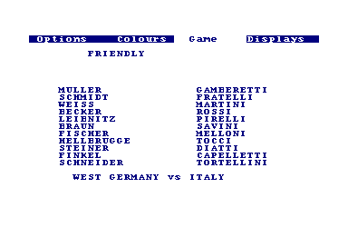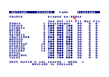 Ma première rencontre avec ce jeu, n'avait rien du coup de foudre. Je m'en souviens encore... il y a 20 ans, la pluie... pas la peine d'envisager d'aller taper la balle dehors... Soit ! J'aurai ma revanche sur mon CPC. En effet, on vient juste de m'offrir une compilation sur laquelle figure une simulation de football. Voilà l'occasion rêvée de l'essayer. Un écran titre plus tard, me voilà face à un écran qui ferait pâlir d'envie les tableurs de l'époque. Je suis complètement désemparé...