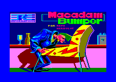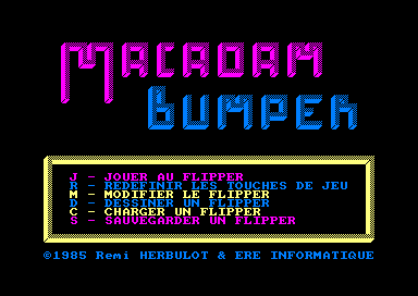 Macadam Bumper est donc (si mon introduction est assez claire) un jeu de flipper sur Amstrad. Dans l'énoncé, cela peut faire peur, mais en fait non. Remi Herbulot, l'auteur, est devenu une légende suite à ce titre, et vu le nom on ne peut que l'estimer : il est français. Mais trêve de chauvinisme à la con, qu'est ce qui fait la légende de Macadam Bumper ? Un jeu de flipper, c'est bien, mais pas de quoi en faire un mythe. Moi-même je n'aime pas vraiment ça, mais bon ? Et bien si, celui là me plait bien, car particulièrement novateur. Zoom.