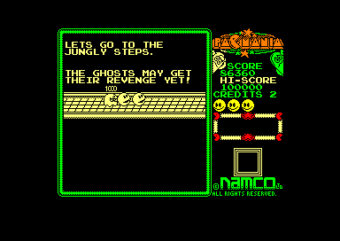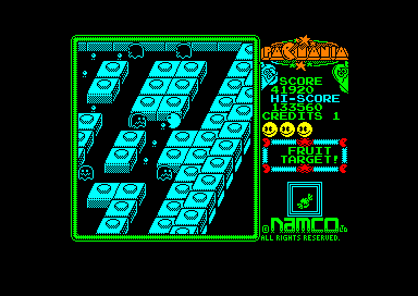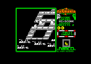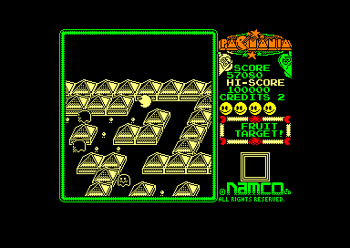 Cependant les programmeurs ont été sadiques, ou stupides, à vous de voir (oui tu as le droit d'avoir un avis internaute, c'est cela le web 2.0 !). Car non content de pousser l'Amstrad à bout, ils vont carrément le faire flancher en proposant, sous forme de pac-gomme (je repense à Coluche et ris de bon coeur) un bonus de rapidité. Et là on peut dire champions, car durant la courte période de rapidité de notre camembert favori, l'effet diaporama est nettement visible…