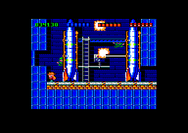 On bouge un peu. Le héros se manie étrangement. Il sautille, avec un bruit qui personnellement me rend fou. Zboing. Il bondit comme un cabri, mais ne fait pas que sauter, il est aussi armé, AH AH ! Oui, un fusil et une bombe. La manipulation n'est pas évidente. Il faut appuyer sur le bouton d'action puis sur haut pour tirer un coup de fusil ou sur bas pour une bombe posée aux pieds de notre héros. Bien sûr les munitions sont limitées, ce serait trop simple sinon. En cas de panne sèche de munitions, Rick peut utiliser un bâton paralysant, en appuyant sur le bouton d'action + gauche ou droite selon la direction, qui immobilisera les vilains un temps, le temps de prendre ses jambes à son cou pour se tailler en vitesse. Simple et efficace.