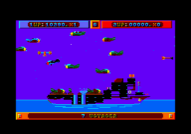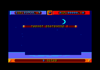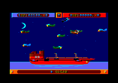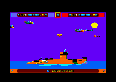 Le principe est tellement enfantin qu'un sous-officier de carrière pourrait le comprendre. Aux commandes d'un petit zinc, vous survolez l'océan et devez couler ce qui y flotte : porte-avion, croiseur, baleinier japonais. Rien n'étant jamais facile dans ce monde amer et gris (essayez de passer à la Poste après 17h), le ciel au dessus de votre cible est particulièrement encombré par des bidules volants qui n'ont de cesse de vous empêcher d'envoyer votre cible nourrir le corail. Nous seulement il vous faudra les détruire pour éviter de faire un constat qui s'avérera délicat à rédiger à 2000 pieds d'altitude mais c'est également l'unique moyen d'envoyer par le fond le gros truc qui clapote sous vos pieds. En dégommant les pilotes adverses, on les envoie s'écraser avec pertes et fracas sur le bâtiment, qui s'émiette peu à peu; jusqu'à ce qu'aucun seau et serpillière ne suffisent pour combattre les voies d'eau. Glouglou et niveau suivant. Et ceci sans perdre du temps en se roulant une gitane maïs ou en envoyant des messages rigolos à vos copains cibistes : vous ne disposez que d'une semaine pour défaire le Dr Destructo et son empire du mal, pas un RTT de plus.
