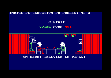 Le jeu est ensuite assez linaire au fil du passage des années, 7 ans pour un mandat (vive les années 80-90 !) avant les élections. Mais avant d'en arriver là, il reste un paramètre qui pourra tout faire changer à la fin du septennat. Le paramètre le plus mythique, le plus kitsch (encore plus que les vieilles de la DDE Stéphanoise) le plus drôle à jouer aussi : le débat télévisé EN DIRECT. C'est en quelque sorte l'apothéose de l'intérêt de ce jeu.
