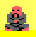 Fier de vos nouvelles techniques, vous approchez le monstre sanguinaire qui lui aussi est apparemment là pour l'éternité. Vous vous approchez de lui. Il vous regarde de son pixel noir de haine. Vous le claquez. Il tombe. Vous gagnez un point. Et le match redémarre. Puis vous vous rapprochez, vous lui faites une balayette qu'en tacticien parfait vous aurez machiavéliquement préparée, et il retombera. Et ainsi de suite.