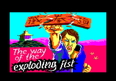 Waw, ce nom… Prononcez-le en hurlant genre « Ouaaiiis offf zeeuuu exxxxploding fisteuuuh ». Ça claque, comme un fouet sur les fesses d'un esclave, comme une Ferrari au soleil. Pour les non anglophiles, ce titre pompeux se traduit par « la voie du poing explosif ». Vraiment puissant. Immédiatement l'inconscient se met en branle. On sent tout de suite le Bruce Lee junior lâché dans les rues de Tokyo ou de n'importe où pour venger la mort de son père, maître cordonnier de son état. Le père était bien évidemment honnête, brave, payait ses factures à temps, traitait les gens avec respect et les gens le lui rendaient bien. Il était beau, hardi à la tâche, donnait des bonbons aux enfants qui lui attachaient ses lacets en rigolant, et il rigolait lorsqu'il se cassait la gueule de son tabouret à cause de la blague des petits galopins, blague qui avait eu le malheur de faire tomber les centaines de chaussures que les gens lui confiaient, chaussures qu'il rangeait en riant toujours de cette bonne blague idiote mais fraiche, le tout vêtu de ses dents blanches. Et ils sont venus. Les méchants. La police a bien entendu essayé d'étouffer l'affaire, mais le fils est un acharné. Il doute du fait que son père se soit suicidé en se tranchant tous les membres avec une figue molle pour ensuite se tirer 4 balles dans le torse et une dans le front. Il doute et il agit. Et c'est vous et votre Amstrad qui allez vous y coller.