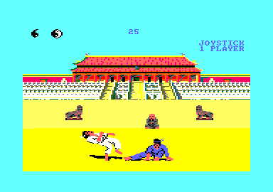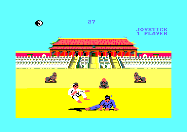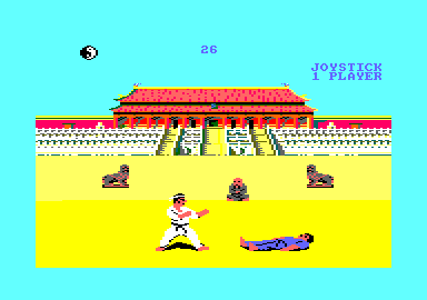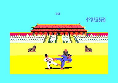 Vous avez devant vous l'authentique jeu le plus gavant de l'histoire de l'Amstrad. Si l'absence de background n'est pas un critère discriminant, l'absence de tout le reste si. On enchaîne les matchs, à taper le désormais célèbre homme en bleu, pour monter en grade. Et c'est l'éternel combat qui recommence, toujours le même ennemi, toujours les mêmes sauts ridicules au ralenti, toujours les mêmes balayettes arthritiques, toujours les mêmes gestes niais, toujours le caillou qui ne bouge pas…