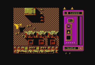 Ce n'est que lorsque j'ai émulé ce jeu, fébrilement, la bave au lèvres, Rob Hubbard à fond, et que je me suis rencardé sur internet que j'ai compris. Mon Dieu. Après tant d'années à jouer les Danaïdes, la lumière du Seigneur m'apparaît : un des putains de gros bâtiments de merde du début n'est autre qu'un hangar. Dans lequel vous vous croûtez comme une merde en début de partie, mais une fois ladite icône disparue, c'est tout simplement la porte vers les niveaux suivants.