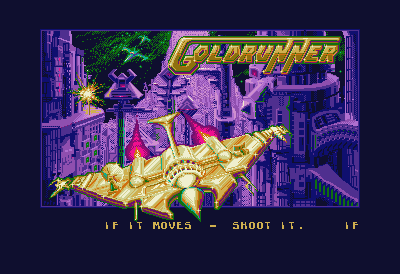 Romain a changé de collège, est parti sous d'autres cieux, emportant ses précieuses disquettes, mais jamais, oh grand jamais je n'ai oublié le thême de Goldrunner. Et mettez-vous dans le crâne qu'il n'y avait pas d'internet à cette époque pour nous faire des piqûres de rappel. Non, si j'ai gardé cette mélodie fidèlement en tête pendant plus de 15 ans, c'est bien que nous touchons au mythe. Ecoutez-moi ça ! Tout le chiptune de la grande époque. Une basse hypnotique, une rengaine remplissant parfaitement son rôle de scie musicale, des sonorités grasses, tout y est. Je crois bien qu'on se le lançait uniquement pour ça.