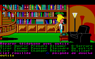 Jugez plutôt. Maniac Mansion, issu de l'imagination de Ron Gilbert, est un jeu d'aventure somme toute classique pour aujourd'hui, mais diablement novateur pour l'époque. Son principe est assez simple : il faudra diriger le personnage dans les différentes pièces en lui donnant des ordres à l'aide de verbes figurant sur le bas de l'écran en les assignant avec des objets ou des personnages. Les interactions avec le décor sont donc nombreuses et une action typique sera de sélectionner le verbe