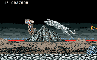 Mais cette difficulté élevée est largement sauvée par des graphismes à la hauteur de l'évènement. Les décors sont très réussis (même s'ils sont globalement moins colorés que la version arcade) et les sprites sont soignés. J'ajouterai d'ailleurs une mention spéciale au tigre du premier niveau, entièrement constitué de métal brillant, qui dégage une classe monumentale dans ce saut majestueux qu'il exécute dans le but de mettre le joueur à terre. Les animations ont elles aussi bénéficié d'un soin particulier, notamment en ce qui concerne le dragon. Ses déplacements sont fluides, et on se surprendra à l'animer en permanence pour admirer les mouvement de son corps à l'écran. Un vrai régal.