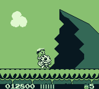 Notre petit héros aura aussi à lutter contre la gangrène mystérieuse qui parcourt son corps. Pour une raison inexpliquée, il dispose d'une barre de vie qui fond comme neige au soleil lors de l'avancée du niveau. Il devra donc croquer quelques fruits et légumes glanés au long du niveau, sous peine de mourir, là, en slip en feuilles au milieu de rien. Epargnez-lui ce sinistre destin, et arrêtez de bailler cela commence à se voir.