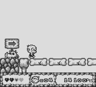 Bonk a donc eu droit à ses aventures sur Game Boy. Parbleu. Si j'avais du succomber à un infarctus sur mes toilettes en ce jour du Seigneur, je serais mort moins idiot - bien que dans une position m'interdisant tout passage à la postérité. Les bonnes surprises étant une denrée rare en ces temps d'austérité et de Laurent Ruquier, on va s'empresser de faire chauffer le rectangle grisâtre de Nintendo et de dresser une analyse sans concession de la bête. Andiamo, comme dirait un allemand qui aurait fait italien seconde langue.
