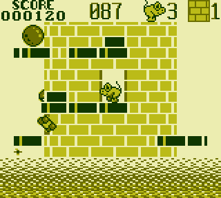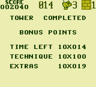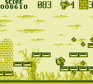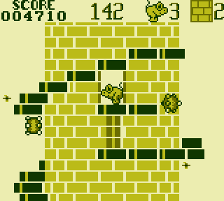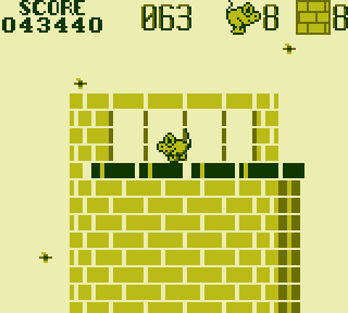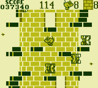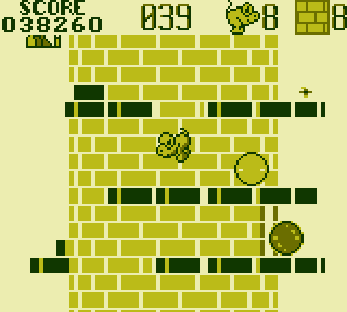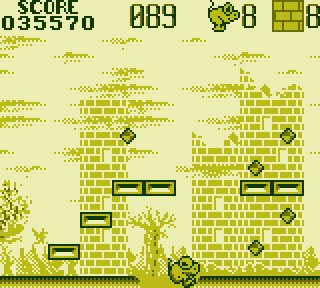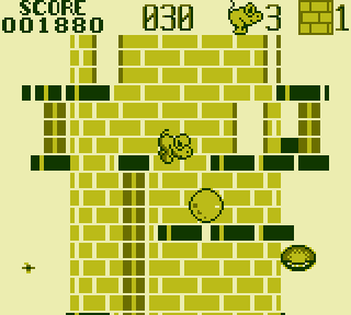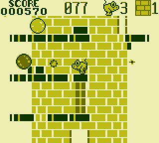 Ceux d'entre-vous qui connaissent Nebulus peuvent donc retourner sur leur site favori à commenter les derniers soubresauts de l'actualité internationale, puisque pour ceux-ci je spoile comme un goret : Castelian sur Game Boy est un portage honnête et fidèle de Nebulus, à deux-trois éléments près, qui relèvent du détail. Voilà. Je n'aime pas vous faire perdre votre temps, nous sommes entre gentlemen.