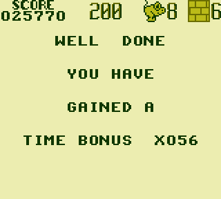 Et attention. Je ne parle pas du timer laxiste à la Castlevania, genre 999 secondes pour faire un niveau de trois minutes. Non Monsieur, non Madame, sortez les Festina du dimanche, ici vous n'aurez pas ou peu de marge d'erreur. Un faux pas et c'est la rage qui vous étreint lorsque, à deux mètres du bol de sangria, le fatal " 000 " s'affiche et réduit vos efforts à néant. Les derniers niveaux ne vous offriront aucun repos, aucun refuge, nada. Ceci dit un soupçon de pitié a effleuré le coeur du concepteur du jeu : les niveaux bonus. Oui, entre chaque tour, vous accéderez à un niveau intermédiaire, cette fois-ci avec un scrolling classique. Si vous le terminez en avance, le temps restant sera ajouté à votre besace pour la tour suivante : les minutes reportables 15 ans avant les forfaits Ola. Chouette ! Sauf que pour cela vous devez TERMINER le niveau bonus. Ha ha. Ha. Ha..... ah.