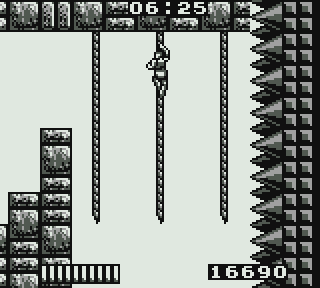 Pour faire dans les généralités que tout le monde connaît, Castlevania est un jeu en 2D de profil, mélangeant plate-forme et pourrissage de gueule des méchants. Le personnage (ici, Christopher Belmont) doit explorer 4 niveaux d'un château obscur, sanctionnés chacun par un boss, en donnant des coups de fouets dans tout ce qui bouge, y compris dans les bougies pour récupérer des bonus. Le tout en un temps [rarement trop] limité. Et il amusant de constater, finalement, qu'une fois de plus, cette truffe de Dracula a laissé, comme un con, un passage jusqu'à chez lui avec plein de bonus sur le chemin.