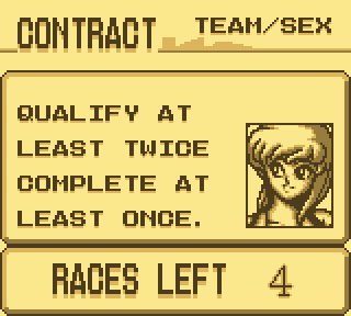 La particularité est que vous avez un CDD de 4 courses. Si vous remplissez votre contrat, il est reconduit pour 4 autres courses, etc… jusqu'à la fin de la saison. Enfin si vous y arrivez. Mais bon. Vu la difficulté extrême du jeu, n'importe quel polio peut le faire.