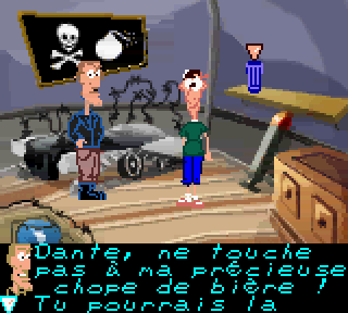 Pour ceux qui n'aurais jamais tâté un P&C, vous glanerez tout un tas d'objets et d'ustensiles apparemment anodins au gré de vos errements dans les couloirs de l'établissement et aux alentours du campus. A vous de les combiner comme il se doit pour que ô miracle, un nouvel objet soit créé, un mécanisme déclenché ou que sais-je encore. En gros, faut faire comme Angus et se démerder avec ce qu'on a sous la main pour résoudre le problème qui se présente : « bonjour, je suis un problème - ah merde ! encore ! ». A vous de trouver la logique du truc donc, et pour vous y aider, vous pourrez également compter sur de précieuses informations glanées auprès des divers personnages rencontrés un peu partout.