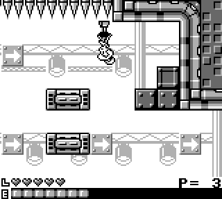Cette petite transition toute en légèreté permet d'introduire les deux autres niveaux, où Judy et Jane (la fille et la mère) pourront revêtir un habit spécial qui offrira une capacité de déplacement supplémentaire. La fille, en chaussant ses bottes gravitationnelles, pourra marcher sur les pics et grimper au plafond pendant une durée limitée, tandis que la mère, grâce à son jetpack, pourra s'envoyer en l'air dans les mêmes conditions. Hélas !, ce paragraphe grivois voit gris, à l'image de cette figure de style, ou plutôt de l'ensemble de ces trois niveaux. Je trouve que seul celui de Judy se détache du lot, car il est finalement le seul à assurer correctement son principe. La physique du jetpack de Jane, bien trop lourd dans son utilisation, est quant à elle une gageure qui anéantit les bonnes idées envisagées.