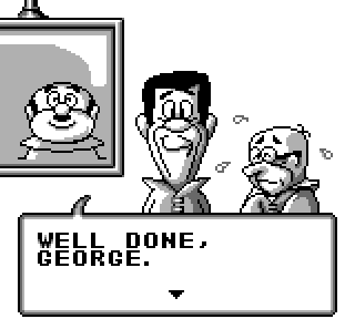Et ce bon George dans tout ça ? Eh bien il se contentera de ramasser les trois personnages à la fin de chaque niveau, avant de pouvoir lui aussi partir à l'aventure dans le dernier tableau du jeu. Et cette fois, on ne rigole plus, le père Jetson va pouvoir utiliser la totalité de l'attirail familial à volonté. Si la balle du fiston est utilisable en permanence, le jetpack et les bottes devront être systématiquement échangés par un détour dans le menu « select ». Une manipulation bien trop laborieuse qui rompt régulièrement le rythme du jeu qui n'en demandait pas tant.