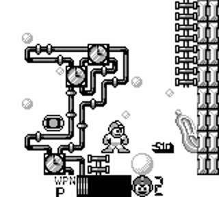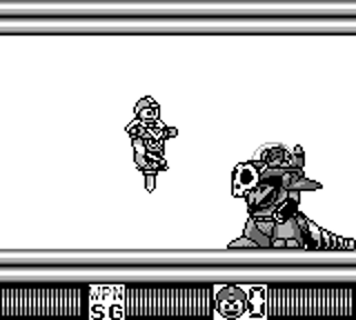 Bon, en fait, plus que de raison ou d'envie de durabilité, il se trouve que mon petit gars (six ans et demi, c'est fou) a envie de découvrir les jeux de Megaman. Il était grand temps qu'il découvre enfin les vraies choses de la vie, une grande destinée l'attend. Nous en sommes arrivés aux épisodes Game Boy, et évidemment le dernier en date joué est celui en question, le jeu du mal, celui qui fait un peu tache sur la mer d'huile, le Murielle Bolle de la famille. C'est donc bien assis dans le canapé, une manette 8bitdo à la main et la cartouche bien ancrée dans la Super Game Boy, que nous parcourons ensemble et sur grand écran les prouesses du légendaire robot gris.