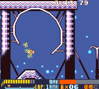 Mais ce jeu ne serait rien sans son mode deux joueurs. Là gros délires en perspectives. C'est toujours aussi grand de pourrir son pote/fr-re/ch-rie en combat à mort, où l'on appuie comme un tarée sur le boost en espérant que ce fumier qui ne vous lâche pas les bottes se gaufre aussi au prochain looping. Et on tournoie à deux, on se plante à deux, on jure à deux, on trip à deux. Tout ça dans un environnement diaboliquement mignon et pourtant pas si loin que ça de l'autre. Grand !
