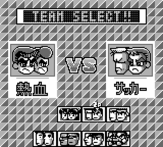 Si vous n'avez pas malencontreusement détruit votre gameboy de rage à ce moment là, vous aurez tout le loisir d'écouter les mélodies entraînantes qui habillent les prestations des deux équipes sur le terrain. Là aussi, tradition Kunio oblige, chaque duo de persos possède son identité musicale, et franchement, elle est très réussie. De même que les environnements, d'ailleurs. C'est varié, c'est barré, c'est Kunio, et on ne s'étonnera même pas d'avoir des items à sa disposition, à savoir des bombes (bon), de la drogue (?!), et puis du etc (non, moi non plus je sais pas). Y'en a même 6 de chaque en fait, avec des sous menus qui vont bien, tout en jap. M'enfin comme j'ai jamais compris comment déclencher les items en question et que je n'ai vu aucune différence pendant les matches, que je les sélectionne ou pas, bon ben…