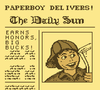 L'originalité de son scénario? Je ne pense pas. Paperboy est, comme son nom l'indique, un connard puceau, qui tente vainement de gagner 3 dollars, en délivrant des journaux de merde qui ne servent à rien, si ce n'est de torche cul (merde à la censure). Et, pour l'anecdote, quand j'y rejoue, je ne peux m'empêcher de repenser à cette scène dans Hot Shots, lorsque ce blaireau, sur son vélo Topbike, balance les journaux, suivis de près par le laitier qui balance ses bouteilles qui vont s'éclater sur la porte. Je me pisse dessus à chaque fois.