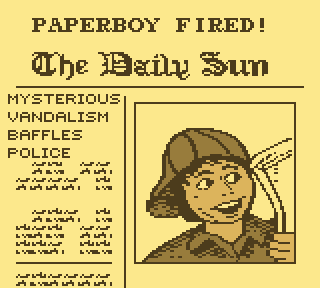 Si vous jouez comme moi (et j'espère pas parce que sinon vous êtes très cons), vous ne finissez jamais la semaine. Vous vous arrêtez à mercreday environ, et le plus drôle : vous êtes recherché par les polices de 84 pays. J'exagère un peu, certes. Mais avouez que, après avoir ruiné successivement votre employeur, puis la ville, c'est un peu mérité. Et n'oublions pas toutes ces petites vielles agressées sauvagement, et tous ces chiens découverts étouffés, 33 journaux coincés dans le tube digestif.