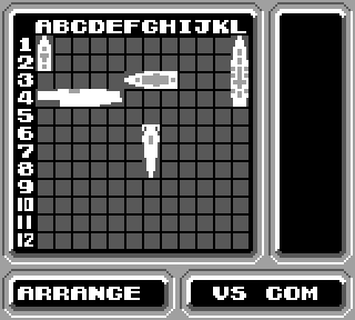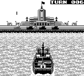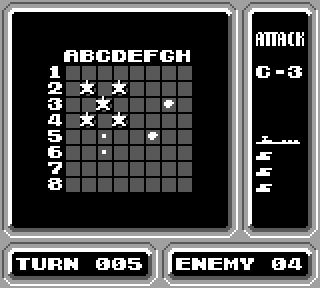 On place ses bateaux, on bouge son curseur sur une grille, on tire, jolie animation qui montre le missile qui part et qui tombe sur le bateau à l'horizon. Ou à côté. Ca met un peu de suspens, en même temps, ça dure pas trop longtemps pour qu'on s'ennuie sur toute une partie, perso j'aime. Et quand le CPU envoie les dragées, on voit sa grille vue de haut, et on stresse à mort en voyant que ça zoome sur une zone où on a placé ses pions, et aaaaaah plouf. Ouf. On s'en tire bien pour cette fois.