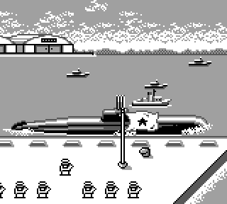Face à vous, en surface : la mer et ses mystères et surtout plein de bateaux à des distances différentes. Ca va de la vedette minable au porte-avion qui vous balance des avions (et oui) qui vous balancent des torpilles dans la figure. Et un sous-marin, qui sera au premier plan. Évidemment, tout cela n'est pas dans le même écran, faut bouger de droite et de gauche pour voir les gens, bande de résidus de raclure du bidet de Staline (on dit "Yes sir !").